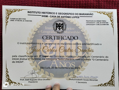 Por José Carlos Castro Sanches Site: www.falasanches.com “A gratidão é a memória do coração.” (Antístenes) No dia 20 de novembro de 2025, em solenidade de comemoração do Centenário do IHGM,